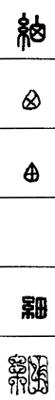 从上到下依次是小篆、甲骨文、金文、古玺及战国文字、缪篆及汉代文字、鸟虫篆。
