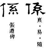 馬王堆帛書《老子》甲本卷後古佚書《明君》:“係婢衣錦繡,戰士衣大布而不完。”影本注云係通奚,為古之奴隸。《周禮·天官·序官》:“奚三百人。”鄭玄注:“古者從坐男女,没入縣官為奴,其少才知以為奚,今之侍史官婢。”按《史記·建元以來王子侯者年表》:“都梁,今侯係。”《漢書·王子侯表》係作傒。