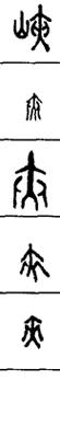 从上到下依次是小篆、甲骨文、金文、古玺及战国文字、缪篆及汉代文字、鸟虫篆。