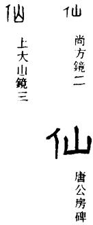 也是声符。简化为仙。仙字从人在山上,山也是声符;引申指高飞、高举的样子,此义后世罕用。