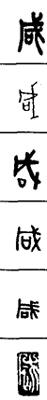 从上到下依次是小篆、甲骨文、金文、古玺及战国文字、缪篆及汉代文字、鸟虫篆。
