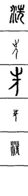 从上到下依次是小篆、甲骨文、金文、古玺及战国文字、缪篆及汉代文字、鸟虫篆。