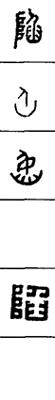 从上到下依次是小篆、甲骨文、金文、古玺及战国文字、缪篆及汉代文字、鸟虫篆。
