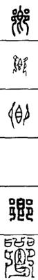 从上到下依次是小篆、甲骨文、金文、古玺及战国文字、缪篆及汉代文字、鸟虫篆。