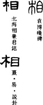 ㈠ xiàng ①仔细看,察看。《诗经·大雅·公刘》:“相其阴阳,观其流泉。”(阴:山的北面。阳:山的南面。)《论衡·订鬼》:“伯乐学相马。”引申为观察人的相貌以判断吉凶安危等。《荀子·非相》:“相人之形状颜色,而知其吉凶妖祥。”《史记·淮阴侯列传》:“相君之面,不过封侯。”②相貌。《荀子·非相》:“形相虽善而心术恶。”《史记·李将军列传》:“岂吾相不当侯邪?”又为质地,实质。《诗经·大雅·棫朴》:“追琢其章,金玉其相。”(追:雕刻。章:文采。)③辅佐,帮助。《论语·季氏》:“今由与求也,相夫子。”(由:仲由。求:冉求。夫子:指季康子。)王安石《游褒禅山记》:“至于幽暗昏惑而无物以相之,亦不能至也。”特指扶助盲人。《论语·卫灵公》:“固相师之道也。”(师:乐师,古代乐师多由盲人充当。)又为扶助盲人的人。《论语·季氏》:“危而不持,颠而不扶,则将焉用彼相矣?”(颠:跌倒。)《荀子·成相》:“人主无贤,如瞽无相。”(瞽:盲人。)引申为扶助君主的人。周代指三公,后指辅佐君主的最高长官。《礼记·月令》:“(孟春之月)命相布德和令,行庆施惠。”(布德:发布德教。和令:宣布禁令。庆:褒奖。)《庄子·秋水》:“惠子相梁。”(相:用如动词,当相。)《史记·陈涉世家》:“王侯将相宁有种乎?”又汉代诸侯王国的实际执政者也称相。《后汉书·张衡传》:“出为河间相。”④古代主持赞礼和司仪的人。《论语·先进》:“愿为小相焉。”《左传·成公二年》:“使相告之曰:‘非礼也,勿籍!’”(籍:指记载在史册上。)⑤古代乐器名。《礼记·乐记》:“始奏以文,复乱以武,治乱以相。”(文:指鼓。武:指金属制乐器。乱:理,治理。)⑥劳动时的号子声。《礼记·曲礼上》:“邻有丧,舂不相。”(舂:舂米。)