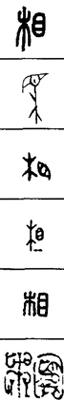 【说明】“相”为会意字,以“目”测“木”,表示察看的意思。