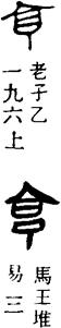 从上到下依次是小篆、甲骨文、金文、古玺及战国文字、缪篆及汉代文字、鸟虫篆。