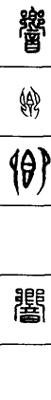 从上到下依次是小篆、甲骨文、金文、古玺及战国文字、缪篆及汉代文字、鸟虫篆。