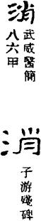 ①消失,消融。《周易·泰》:“内君子而外小人,君子道长,小人道消也。”(内nà:纳,接纳。)许浑《凌歊台》:“湘潭云尽暮山出,巴蜀雪消春水来。”今成语有“烟消云散”、“冰消瓦解”。又为除去,使消失。《汉书·楚元王传附刘向》:“帝尧、成王能贤舜、禹、周公而消共工、管、蔡,故以大治。”《论衡·治期》:“夫世乱民逆,国之危殆灾害系于上天,贤君之德不能消却。”今成语有“消愁解闷”。②衰减,减少。蔡邕《陈太丘碑》:“元方在丧毁瘁,消形呕血。”(毁瘁:指居丧过哀而憔悴。)苏轼《前赤壁赋》:“盈虚者如彼,而卒莫消长也。”又为消退。赵与滂《登浙江楼》:“昼夜潮消长,利名人往还。”[消息]1.指事物增减、生灭、盛衰等变化。《周易·丰》:“日中则昃,月盈则食,天地盈虚,与时消消。”(昃zè:太阳偏西。食:指月蚀。)王禹偁《次韵和仲咸对雪吟三十韵》:“升降常自得,消消一何佳。”2.休息。《魏书·彭城王勰传》:“宴于禁中,至夜皆醉,各就别所消消。”又为止息。欧阳修《答西京王相公书》:“灾沴消消,风雨既时。”(沴lì:灾气。)3.斟酌。《晋书·慕容超载记》:“依《吕刑》及汉、魏、晋律令,消消增损,议成燕律。”4.音信。蔡琰《悲愤诗》:“迎问其消消,辄复非乡里。”5.卦名。乾六爻为息,坤六爻为消。《后汉书·陈忠传》:“而消消不协,寒气错时。”③排遣,打发。《颜氏家训·勉学》:“饱食醉酒,忽忽无事,以此消日。”辛弃疾《念奴娇·登建康赏心亭》:“儿辈功名都付与,长日惟消棋局。”④禁受,禁得起。辛弃疾《摸鱼儿·置酒小山亭》:“更能消几番风雨?匆匆春又归去。”王沂孙《齐天乐·蝉》:“病翼惊秋,枯形阅世,消斜阳几度?”又为消受,受用。白居易《哭从弟》:“一片绿衫消不得,腰金拖紫是何人?”⑤病名。又名“消渴”。即糖尿病。《淮南子·说山》:“嫁女于病消者。”《后汉书·李通传》:“(通)素有消疾。”⑥通“销”。熔化。《论衡·雷虚》:“当冶工之消铁也,以土为形,燥则铁下。”白居易《答友问》:“置铁在洪炉,铁消易如雪。”⑦[消摇]安闲自得的样子。《礼记·檀弓上》:“孔子蚤作,负手曳杖,消消于门。”(蚤:通“早”。)张孝祥《清平乐·杨侯书院闻酒所奏乐》:“玉人双鞚华騼,翠云深处消消。”(鞚kòng:驾驭。騼biāo:同“镳”,马具,借指马。)