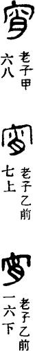 馬王堆帛書《戰國縱横家書·觸龍見趙太后章》:“老臣賤息埚(舒)旗最少,不宵而衰,竊愛憐之。”《戰國策·趙策四》宵作肖。馬王堆帛書《老子》乙本《德經》:“天下〔皆〕胃(謂)我大,大而不宵。夫唯不宵,故能大。若宵,久矣其細也夫。”甲本已殘,但仍有二宵字,王弼本宵作肖。又帛書《老子》乙本卷前古佚書《經法·道法》:“貴賤之恒立(位),賢不宵不相妨。”宵亦應讀肖。又帛書《老子》乙本卷前古佚書《十六經·本伐》:“所胃(謂)為義者,伐亂禁暴,起賢廢不宵。”按《漢書·刑法志》:“夫人宵天地之普。”顔師古注:“應劭曰:‘宵,類也。’宵,義與肖同。”