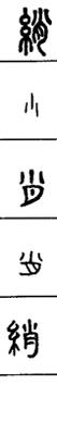 从上到下依次是小篆、甲骨文、金文、古玺及战国文字、缪篆及汉代文字、鸟虫篆。