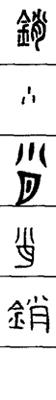 ①熔化金属。《史记·秦始皇本纪》:“收天下兵,聚之咸阳,销以为钟鐻、金人十二。”(鐻jù:钟鼓的架子。)泛指熔化。《论衡·谈天》:“女娲销炼五色石以补苍天。”又指溶化。刘禹锡《连州腊日观莫傜猎西山》:“腊雪半空销。”②消失,消散,消灭。《庄子·则阳》:“其声销,其志无穷。”《汉书·龚胜传》:“膏以明自销。”[销魂]仿佛魂离躯体,形容悲伤愁苦的情状。江淹《别赋》:“黯然销销者,唯别而已矣。”(别:离别。)③刀的一种。《淮南子·修务》:“苗山之鋋,羊头之销。”(苗山:楚山。鋋chán:铁把小矛。羊头之销:刀柄端作羊头形的刀。)特指生铁。《淮南子·说林》:“屠者弃销而锻者拾之,所缓急异也。”