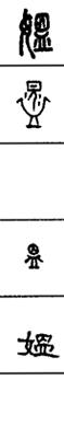 从上到下依次是小篆、甲骨文、金文、古玺及战国文字、缪篆及汉代文字、鸟虫篆。