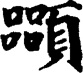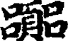 xiāo “囂”字中部增划微变得形。《集韵》:囂,说文,声也,气出头上。 虚嬌切 效开三平宵晓