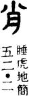 四分。”《璽彙》〇八八七~一〇六七收肖姓私璽一八一枚,如〇九七八“肖慶”,〇九九三“肖阿”,一〇〇五“肖相如”,一〇五八“肖參”。作為姓,肖應讀作趙。《元和姓纂》:“趙,帝顓頊伯益嬴姓之後。益十三代孫造父,善御,事周穆王,受封趙城,因以為氏。”《侯馬盟書》之主盟人趙弧,《宗盟類》一六·三四作“肖弧”,《宗盟類》八八·一又作“制弧”。《委質類》被誅討人“趙喬”或作“肖喬”。皆為明證。又《璽彙》一〇六八“肖賹夫(太)句(后)”,為趙賹太后璽。又中府杖首:“三年中府丞肖許、冶澤。”又《河北出土文物選集》一〇二著録一九七二年邯鄲出土六年庰令戈,庰令名“肖”,肖亦當讀趙。《璽彙》一〇六九:“肖軌器容一斗。”曹錦炎《通論》以為此為趙國嫺舍用器。《珍秦齋藏印·戰國篇》四七“肖