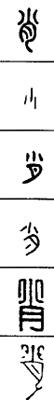 从上到下依次是小篆、甲骨文、金文、古玺及战国文字、缪篆及汉代文字、鸟虫篆。
