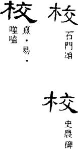 《汇考》卷二三云:明季于行文通用之字,“校”皆改从“较”,“唯经书、字书及前人诗文集多减笔,如汲古阁所刻《十三经注疏》、《十七史》及唐宋人诗文词……‘校’作校”。