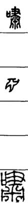 从上到下依次是小篆、甲骨文、金文、古玺及战国文字、缪篆及汉代文字、鸟虫篆。