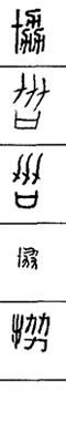 从上到下依次是小篆、甲骨文、金文、古玺及战国文字、缪篆及汉代文字、鸟虫篆。