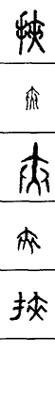从上到下依次是小篆、甲骨文、金文、古玺及战国文字、缪篆及汉代文字、鸟虫篆。