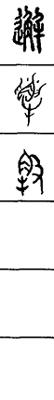 从上到下依次是小篆、甲骨文、金文、古玺及战国文字、缪篆及汉代文字、鸟虫篆。