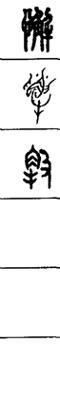 从上到下依次是小篆、甲骨文、金文、古玺及战国文字、缪篆及汉代文字、鸟虫篆。