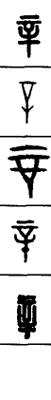 从上到下依次是小篆、甲骨文、金文、古玺及战国文字、缪篆及汉代文字、鸟虫篆。