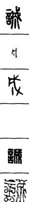 从上到下依次是小篆、甲骨文、金文、古玺及战国文字、缪篆及汉代文字、鸟虫篆。
