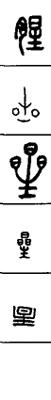 从上到下依次是小篆、甲骨文、金文、古玺及战国文字、缪篆及汉代文字、鸟虫篆。
