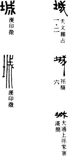 (密)。”所引為《詩·周頌·昊天有成命》,今本城作成。上博楚竹書《容成氏》簡五三背“訟城氐”,此為原書標題,即《容成氏》。上博楚竹書《从政》甲簡七:“不敬則事亡(無)城。”《璽彙》〇三二三:“信城医。”施謝捷《古璽複姓雜考》(六則)謂“信城”即後世之“信成”。《姓氏考略》:“信成,漢有信成縣,以地為氏。”