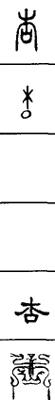 从上到下依次是小篆、甲骨文、金文、古玺及战国文字、缪篆及汉代文字、鸟虫篆。