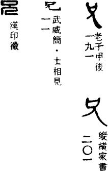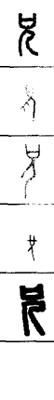 从上到下依次是小篆、甲骨文、金文、古玺及战国文字、缪篆及汉代文字、鸟虫篆。