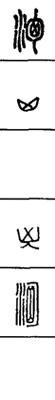 从上到下依次是小篆、甲骨文、金文、古玺及战国文字、缪篆及汉代文字、鸟虫篆。