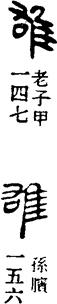 从上到下依次是小篆、甲骨文、金文、古玺及战国文字、缪篆及汉代文字、鸟虫篆。