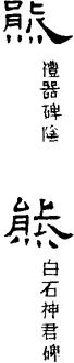 〈辨〉熊字从火,本义为义项①;假借为哺乳动物的熊,其实,熊本当作能,能为熊的本字,详能字下。