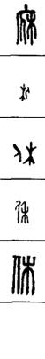 从上到下依次是小篆、甲骨文、金文、古玺及战国文字、缪篆及汉代文字、鸟虫篆。