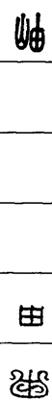 从上到下依次是小篆、甲骨文、金文、古玺及战国文字、缪篆及汉代文字、鸟虫篆。