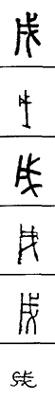 从上到下依次是小篆、甲骨文、金文、古玺及战国文字、缪篆及汉代文字、鸟虫篆。