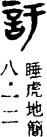 ㈡xǔ ③[訏訏]广大的样子。《诗经·大雅·韩奕》:“川泽訏訏。”