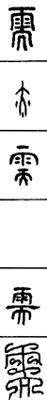 从上到下依次是小篆、甲骨文、金文、古玺及战国文字、缪篆及汉代文字、鸟虫篆。