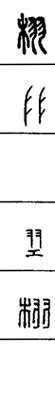 从上到下依次是小篆、甲骨文、金文、古玺及战国文字、缪篆及汉代文字、鸟虫篆。
