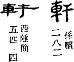 P.2524《語對》:“軒輶。”S.298《太上靈寶洞玄滅度五練生尸經》:“今題太極上宮南軒,甚有分明也。”