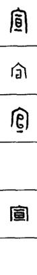 从上到下依次是小篆、甲骨文、金文、古玺及战国文字、缪篆及汉代文字、鸟虫篆。