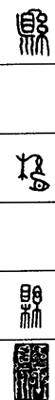 从上到下依次是小篆、甲骨文、金文、古玺及战国文字、缪篆及汉代文字、鸟虫篆。
