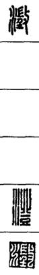 从上到下依次是小篆、甲骨文、金文、古玺及战国文字、缪篆及汉代文字、鸟虫篆。