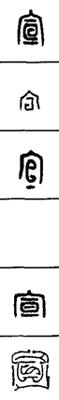 从上到下依次是小篆、甲骨文、金文、古玺及战国文字、缪篆及汉代文字、鸟虫篆。
