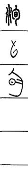 从上到下依次是小篆、甲骨文、金文、古玺及战国文字、缪篆及汉代文字、鸟虫篆。