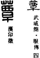 从上到下依次是小篆、甲骨文、金文、古玺及战国文字、缪篆及汉代文字、鸟虫篆。