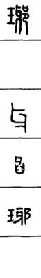 从上到下依次是小篆、甲骨文、金文、古玺及战国文字、缪篆及汉代文字、鸟虫篆。