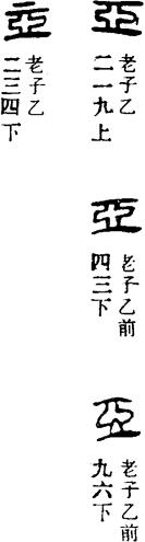 馬王堆帛書《六十四卦·睽(乖)》初九:“見亞人,无咎。”通行本《易》亞作惡。又馬王堆帛書《老子》乙本《道經》:“天下皆知美之為美,亞已。”亞甲本及通行本作惡。又帛書乙本《道經》:“居衆人之所亞,故